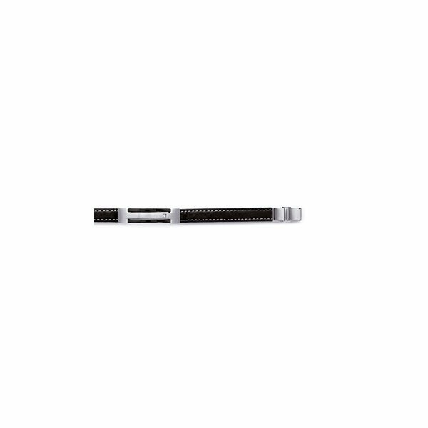 Bracelet en acier ruthénié et cuir, 21cm